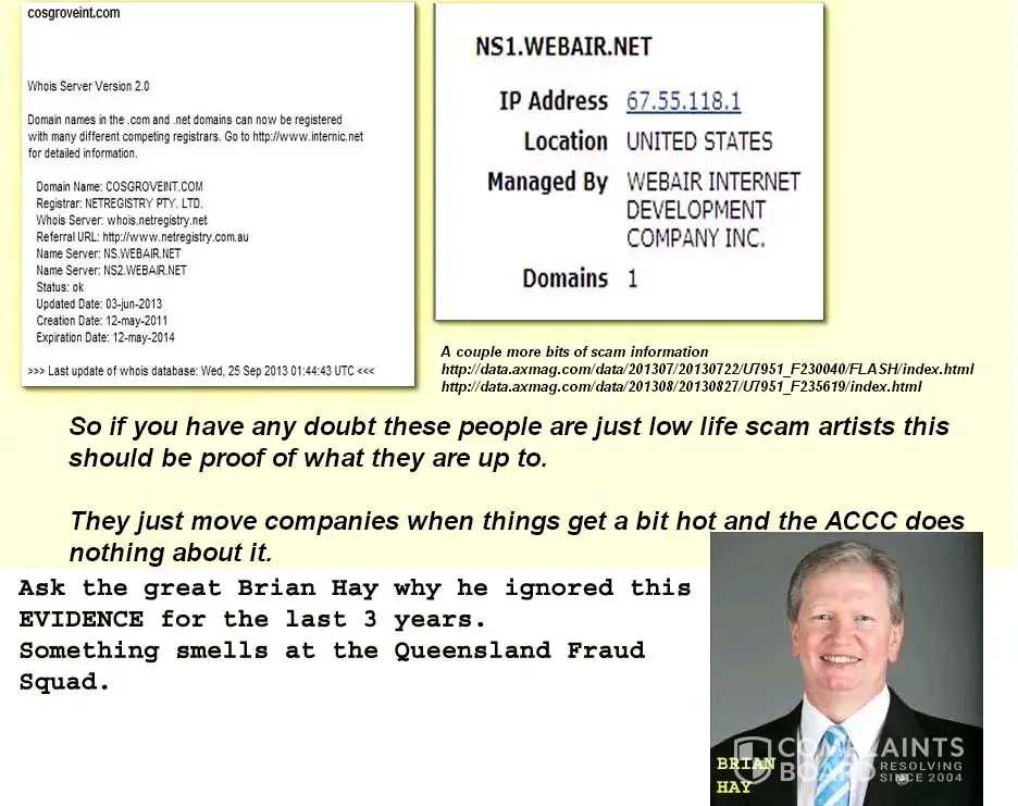 YES - Brian Hay and the Queensland Fraud Squad had this information while the scams were still running from the Gold Coast and they did absolutely nothing.