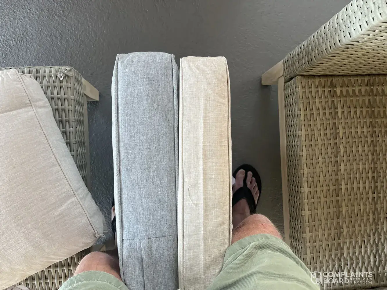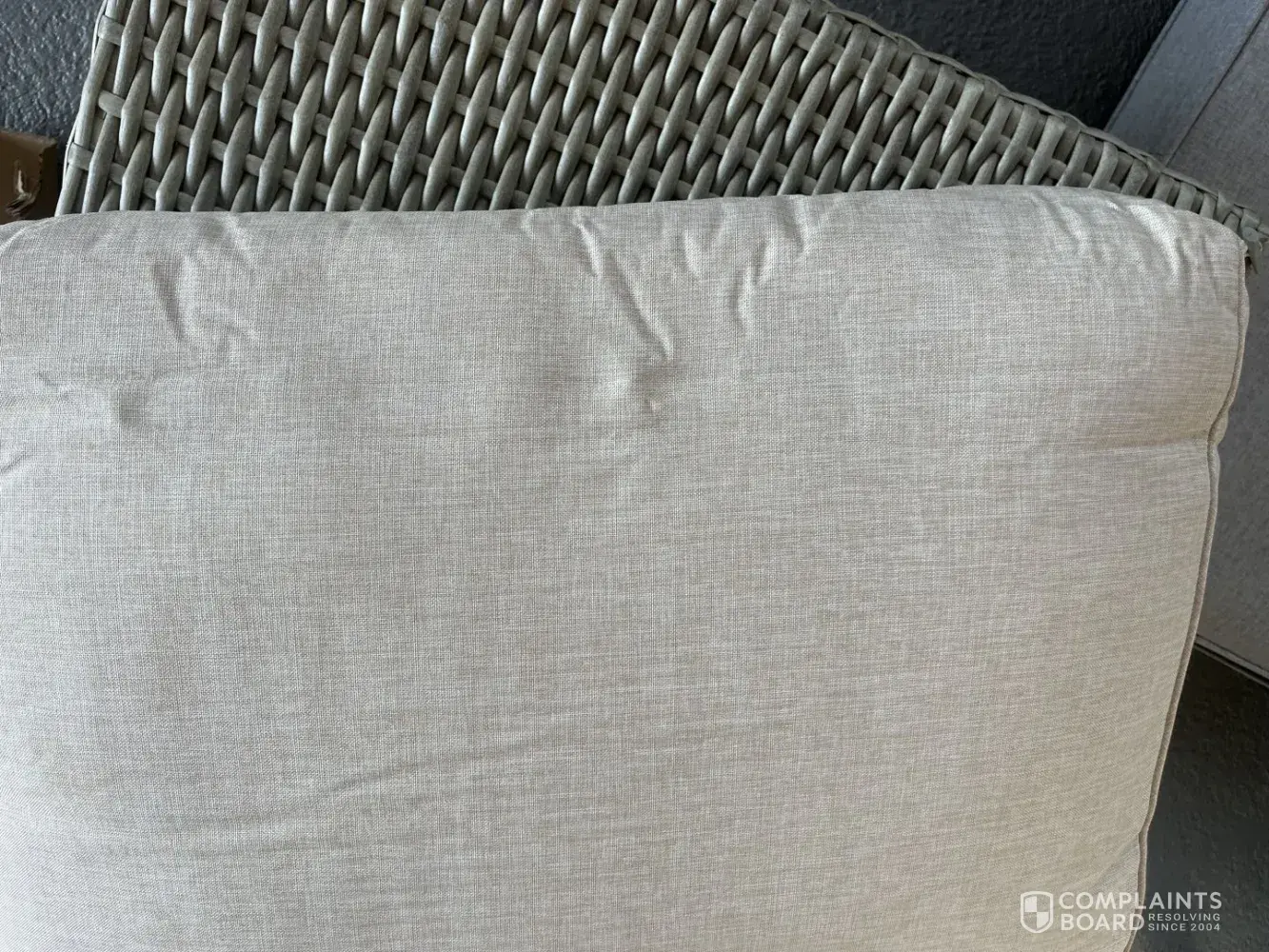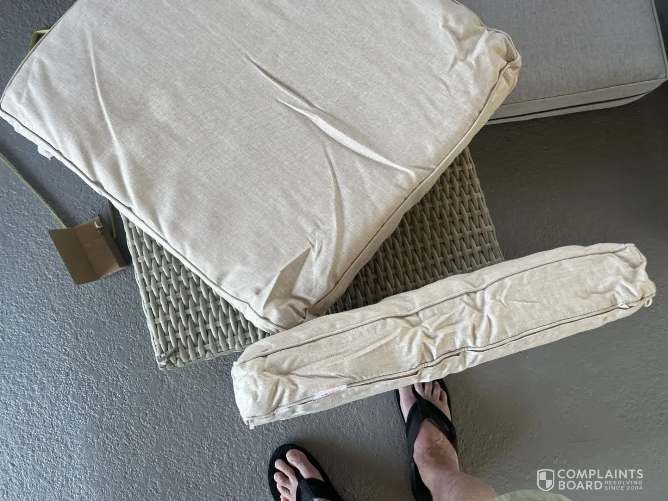 First delivered to the wrong address. I paid to have it moved where it should have been. I unpacked and assembled. A whole lot of issues with the product 1. Ottoman cushions have hold down loops on each corner. One pillow has four. The other is missing three. 2. The ottomans should have four hold down to hook into the hold down straps. There is one clip...