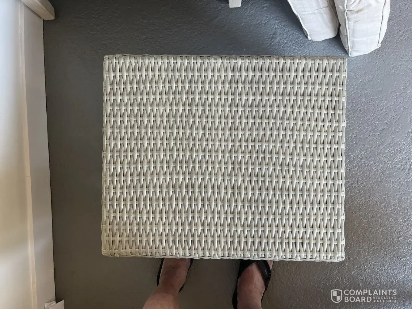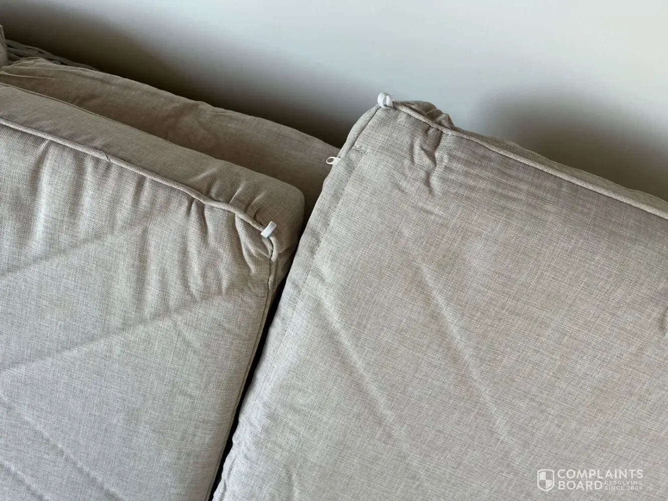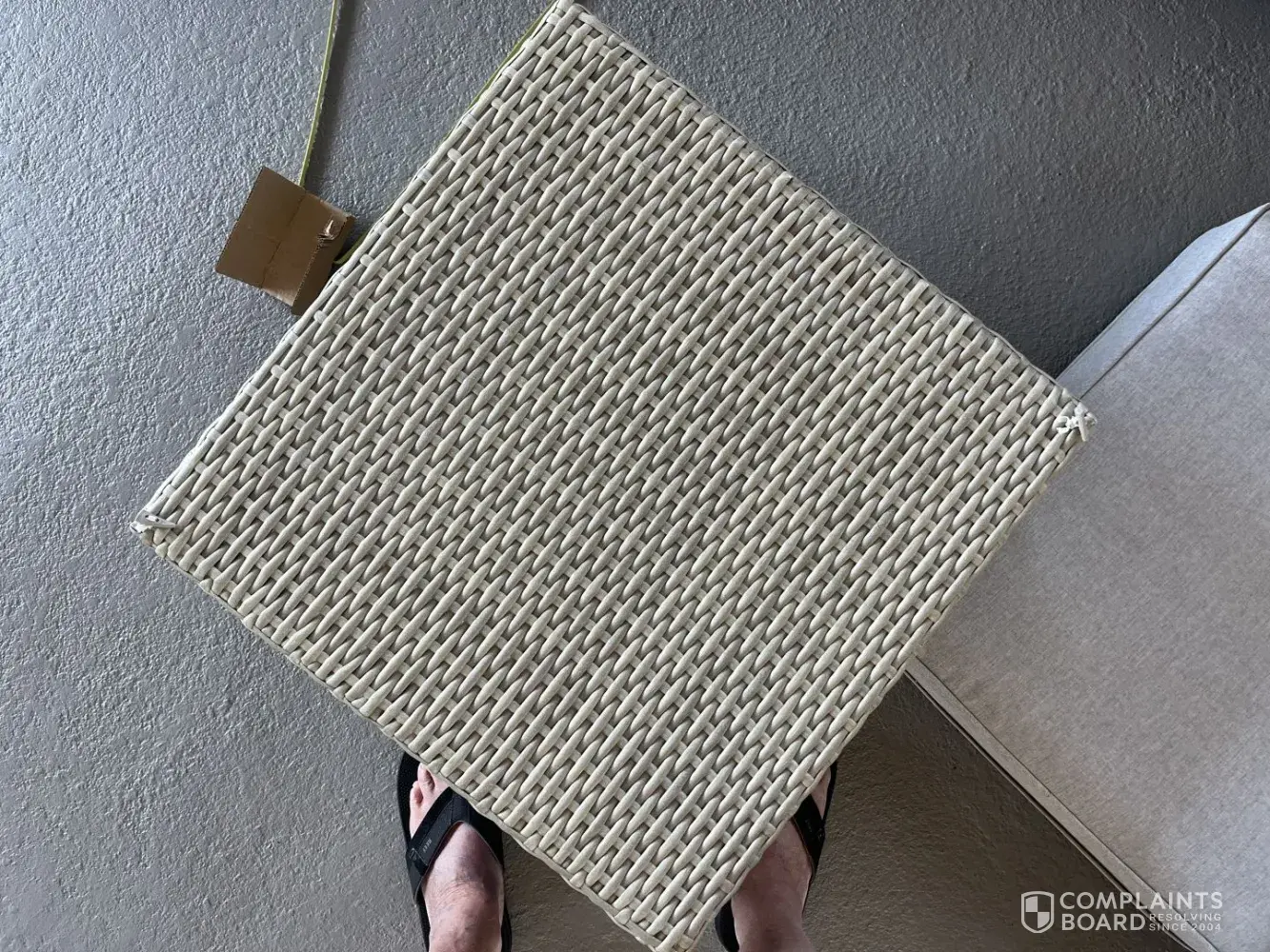 First delivered to the wrong address. I paid to have it moved where it should have been. I unpacked and assembled. A whole lot of issues with the product 1. Ottoman cushions have hold down loops on each corner. One pillow has four. The other is missing three. 2. The ottomans should have four hold down to hook into the hold down straps. There is one clip...