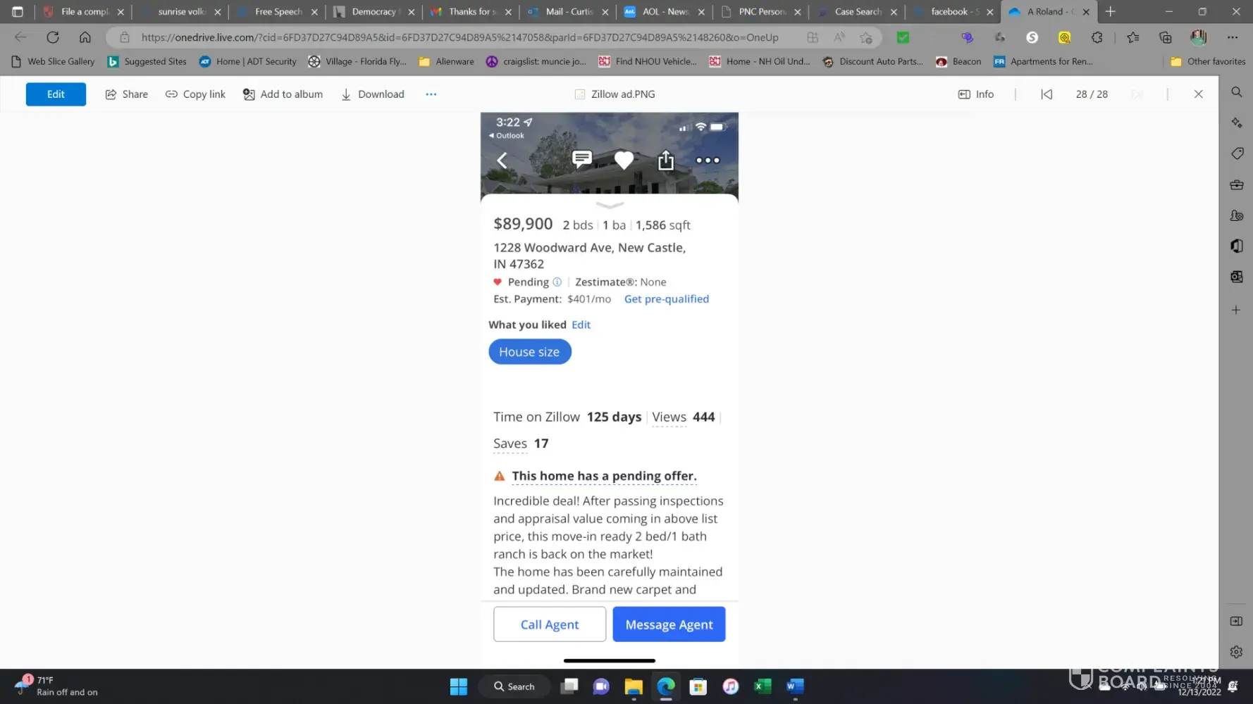 On 11/17/21, I purchased a home that was deceptively advertised on Zillow and MLS as being an "Increditable deal!". The ad reads as follows and is still on Zillow, Incredible deal! After passing inspections and appraisal value coming in above list price, this move-in ready 2 bed/1 bath ranch is back on the market! The home has been carefully maintained and...
