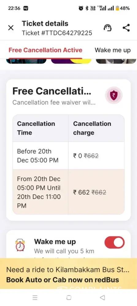 redBus The bus ticket cancelled by operator and the same bus is available for booking