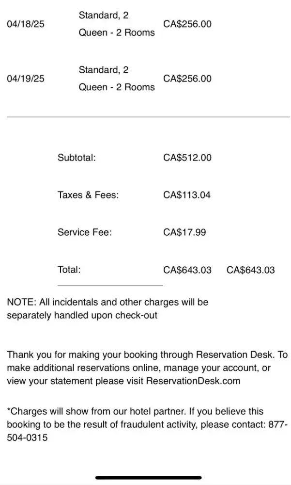 I used reservation desk to book a night at the Fairfield inn, New Buffalo, Michigan. they booked the month before the wedding. I called today March 20, 2026. they said nothing we can do. it's non-refundable. I didn't ask for a refund. Just changed the date. They would not. Always call the hotel. RESERVATIN DESK is just another scam to the people...