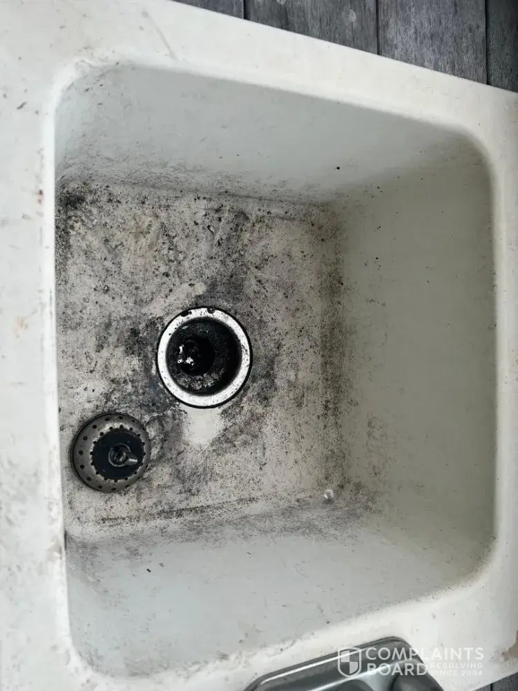 Filthy rental, unfastened deck boards on second level, issues in kitchen, unrepaired faulty drains, trash in front yard.284 [Address Redacted] NC [Zip Code Redacted]. Sept 12 - Sept [Dates Redacted] Rental was filthy. Cockroach feces amongst the dishes. Cockroaches infested in kitchen drawers. Made multiple calls for faulty drain that leaked all over kitchen floor never addressed. Several unfastened deck boards on second level deck. My child fell through the roof level deck chair. Advertised jacuzzi tub in master bedroom broken. Toothpaste scum splattered on bathroom mirrors from previous renters. Handles missing from sliding glass door screens. Deck board completely unfastened at base of exterior stairwell (trip hazard). Exterior Hot tub had sand in the bottom of it upon arrival.
