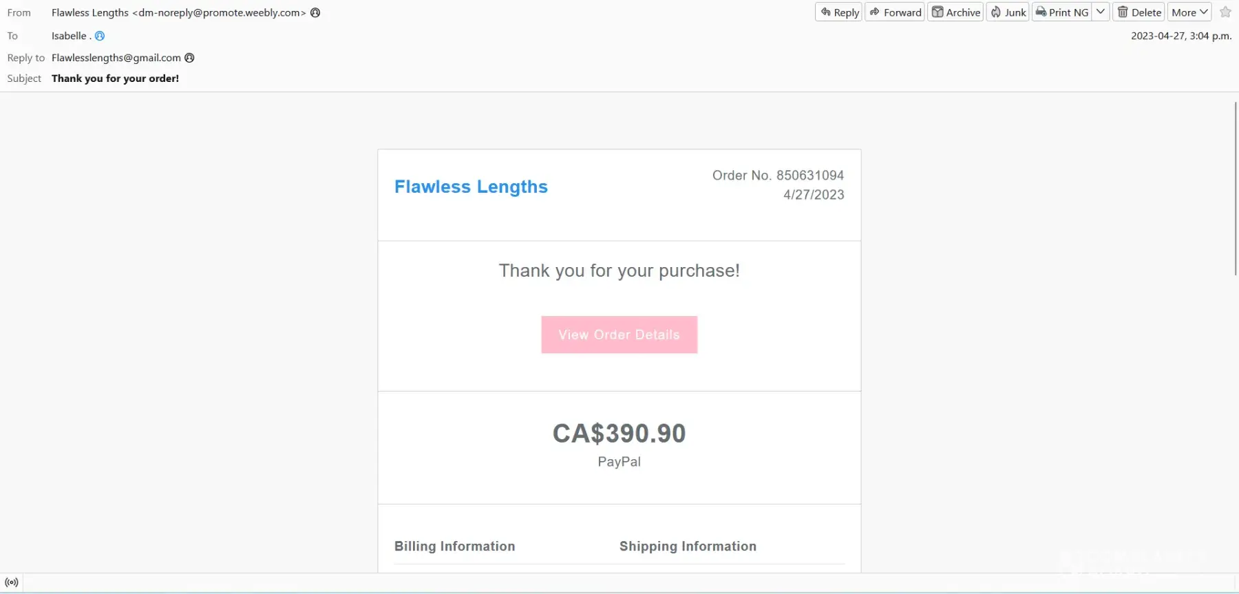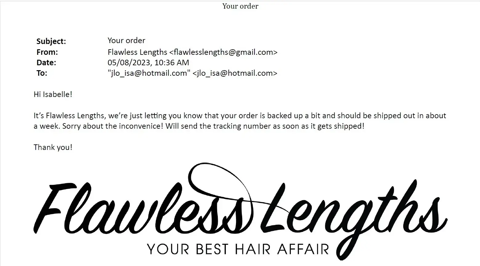 Read full complaintFlawless Lengths - Service