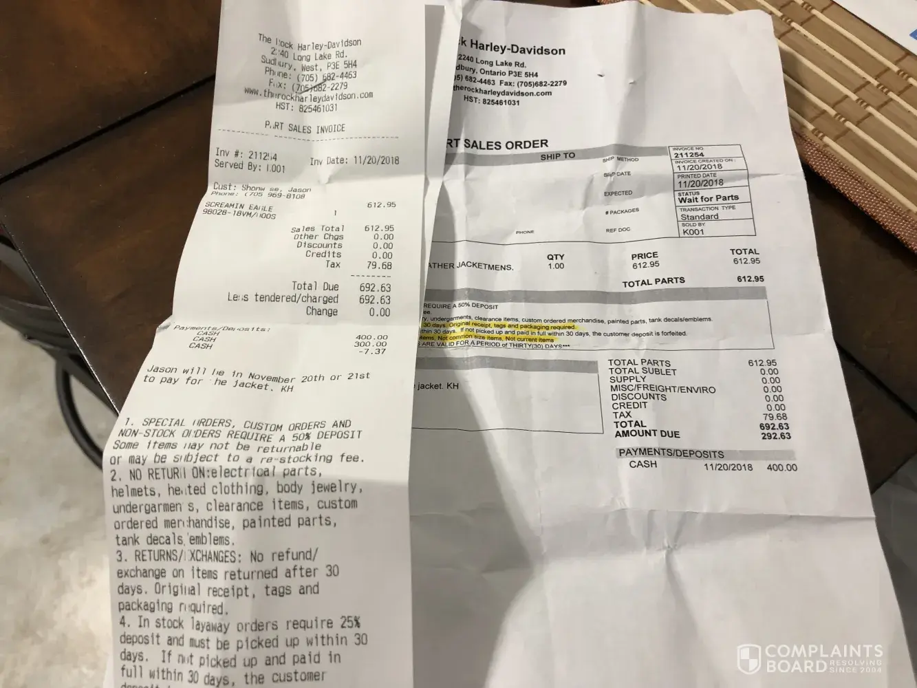 Read full complaint and 1 commentThe Rock Harley Davidson - jacket