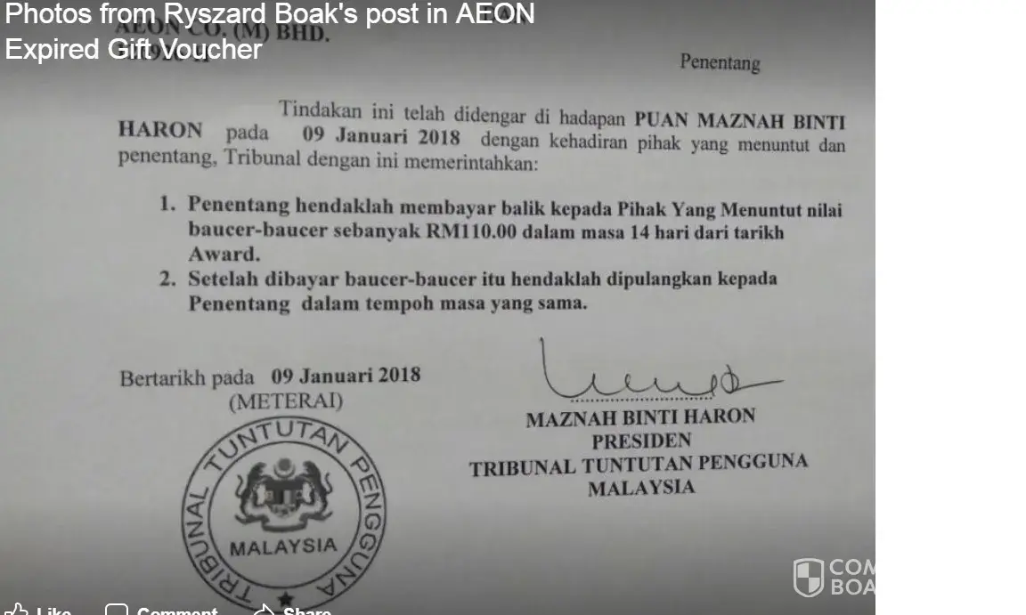 So we all should stand up and make a complaint if AEON reject to accept the gift voucher without expire date.