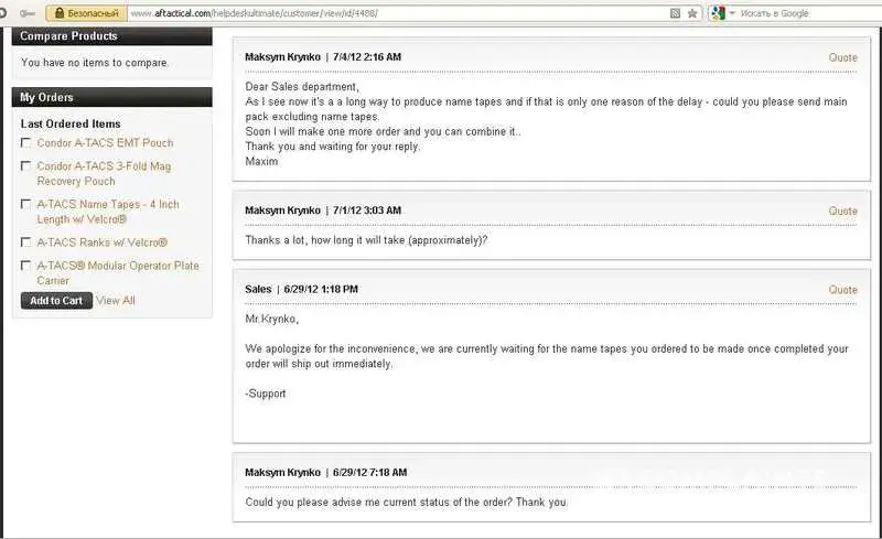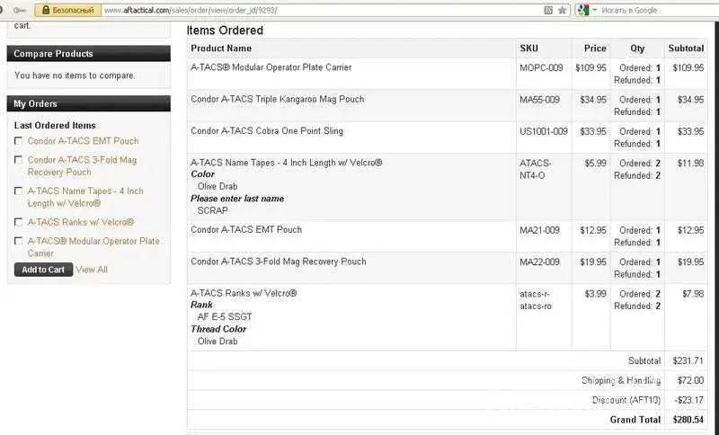 Recently I purchase several goods from the web shop www.aftactical.com, overall price is