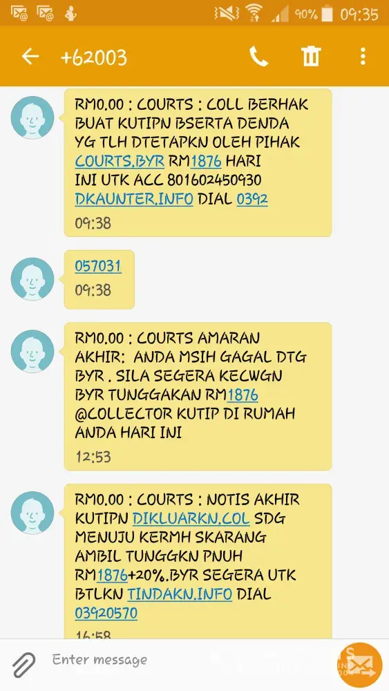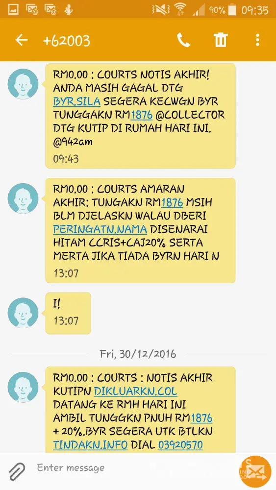 And in the end Courts bring this matter to a very rude lawyer [protected] Sulaiman lawyer firm) to threaten me that if i do not pay up the full amount,
