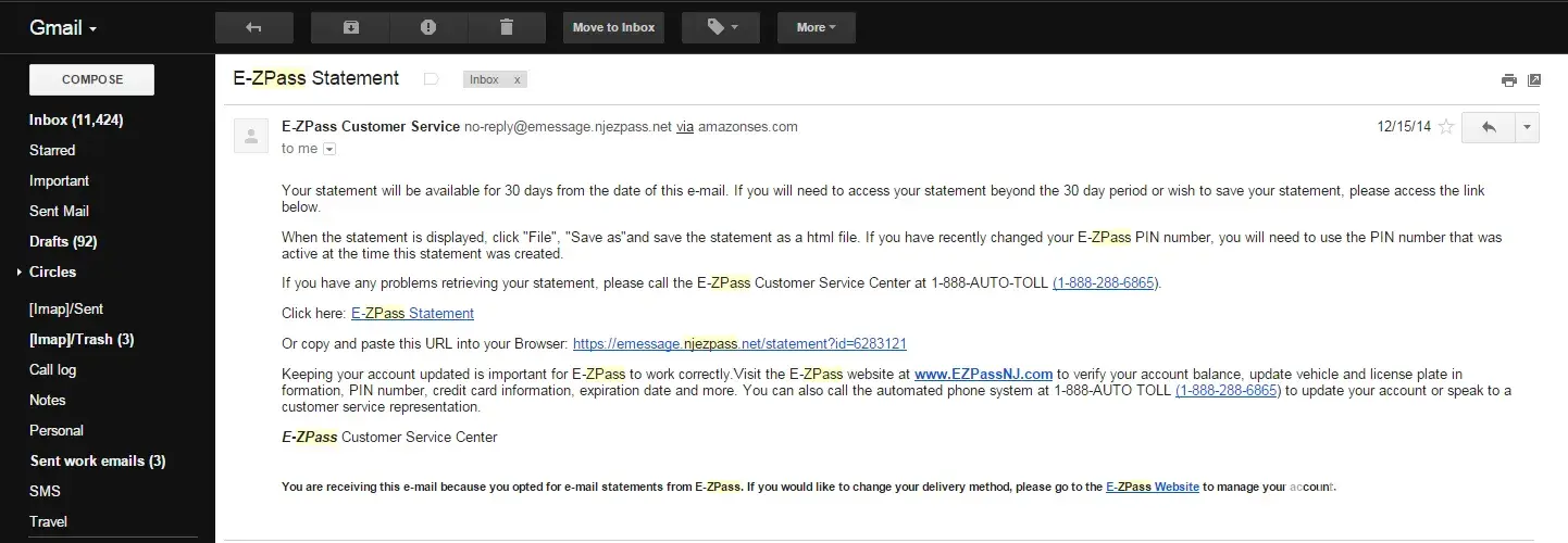 I was given NO OPPORTUNITY to settle account. No phone call. Just an email with subject - Your NJEZPass Statement is available.