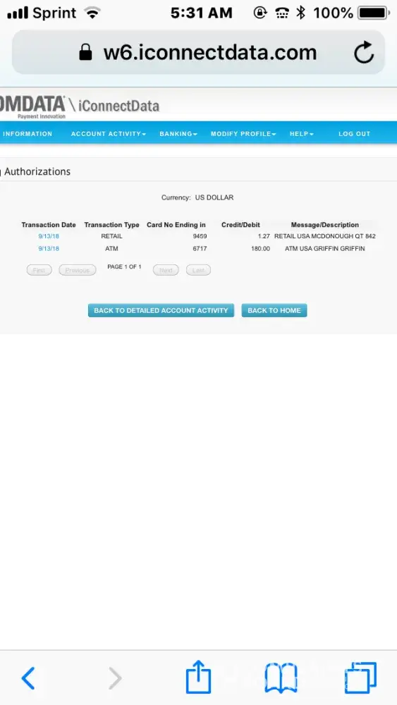Yesterday afternoon I went to QT in McDonough to buy something to drink that coasted 1.27 then I left from QT to go home but when i got home I checked my comdata acount and it said that I had 33 and so I called to complain but no one could give me a sright answer bc I know that amount was wrong bc I'm supposed to have at least 209 in my account and I don't know how or who had my information when I had my information on me at all times yesterday but I just want the money back on my card ASSAP