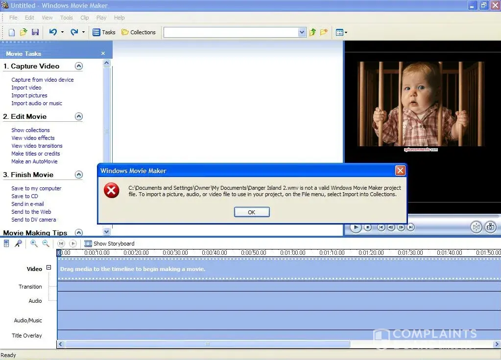 Here is the error I get when I try to use MY videos in Windows Movie Maker! I this whole thin a Scam? I wonder? I am a Partner on You You, lets see if I get results that way, since Real Player won't answer my emails!