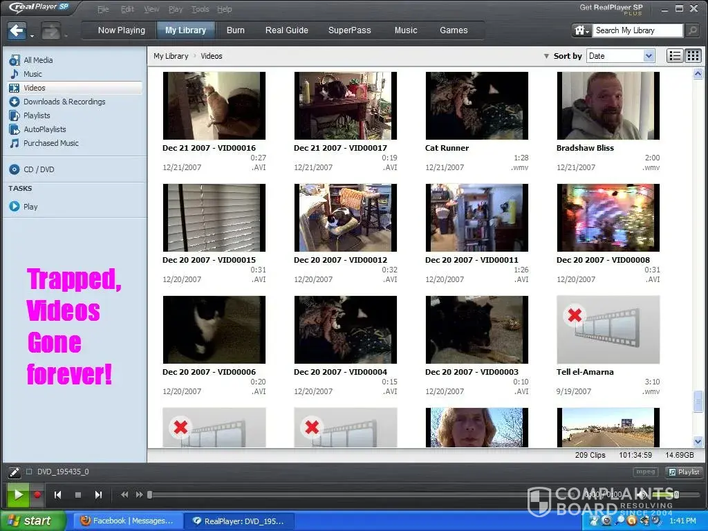After over two weeks of email to their misfit staff of experts, I deleted Real Player! I never Downloaded anything! They stole my videos when I played them in their player! They are lost forever! Here is a screen shot to prove that Real Player is a big mistake! I am deleting the player again, this time forever! Like I said three years ago above, They are worthless!