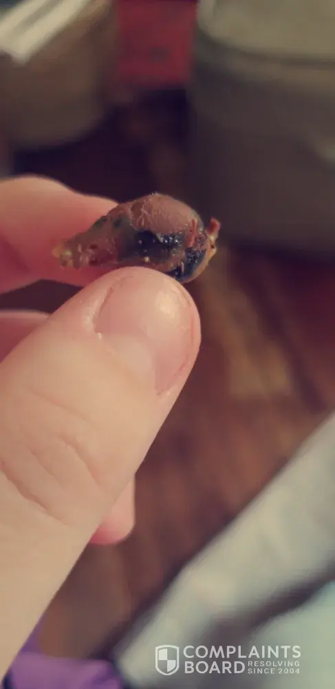 I was eating a snickers and I was trying to chew what I thought was a nut turned out to be something I can't describe I nearly broke my tooth . I can't even break whatever this is with a hammer . I am maddddd. I seriously want a refund .