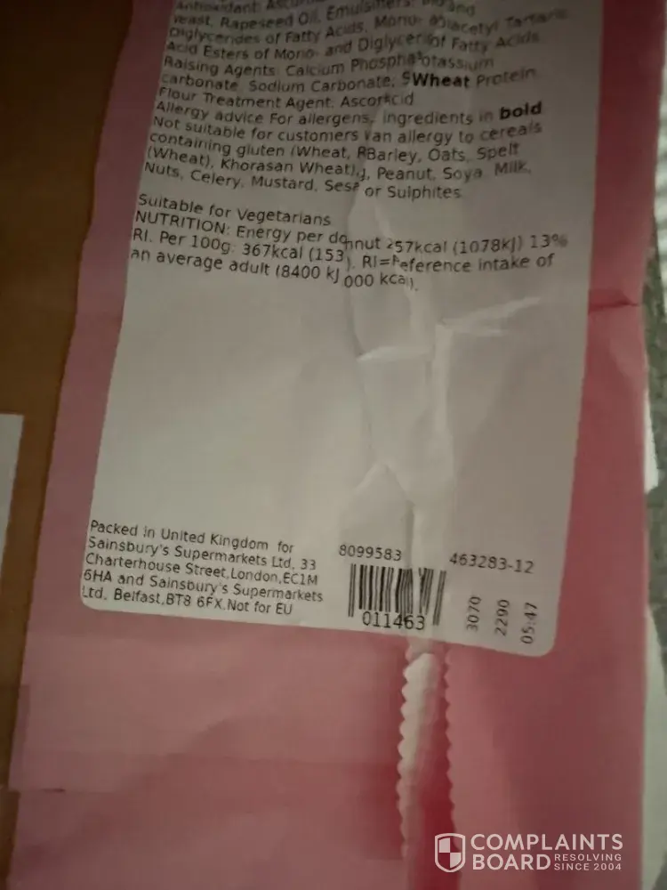 Just done a shop at Sainsbury's and in that shopping I bought some Doughnuts. and they are rock hard and dry not fresh at all. Disgusting especially at £1.35. Friday at 12/12/2025 (They were not on sale so should have been nice. not hard.) From Bognor Regis store at 12:42 Reciept no 6292290062390300121225