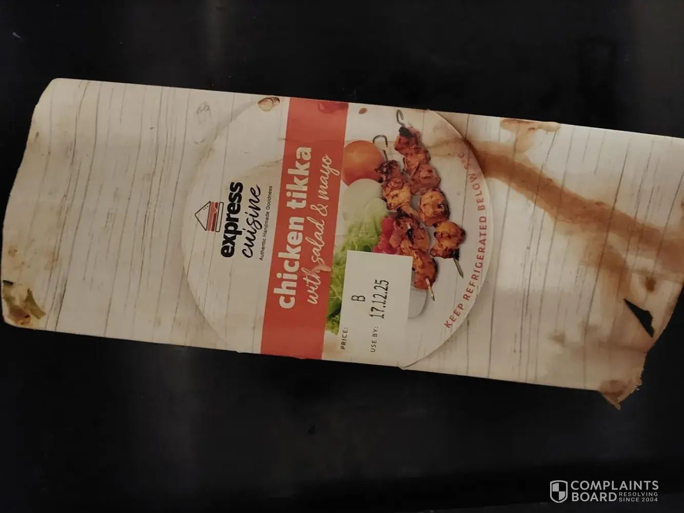 I bought this product, along with other food items, from the Edinburgh Meadowbank Sainsburys store at 18:57, on 17/12/25. The Express Cuisine Chicken Tikka with salad and mayo wrap, was in the reduced section. Due to its use by date, being 17/12/25. It was reduced to the price of £1.99. I have the receipt for all items bought. I went home and ate the...