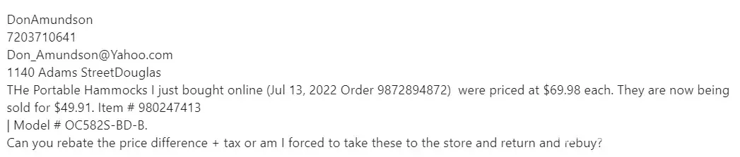 Desired outcome: Credit me $40.00, because I bought it for $99.98 while I was the club in fear the chairs would sell out.
