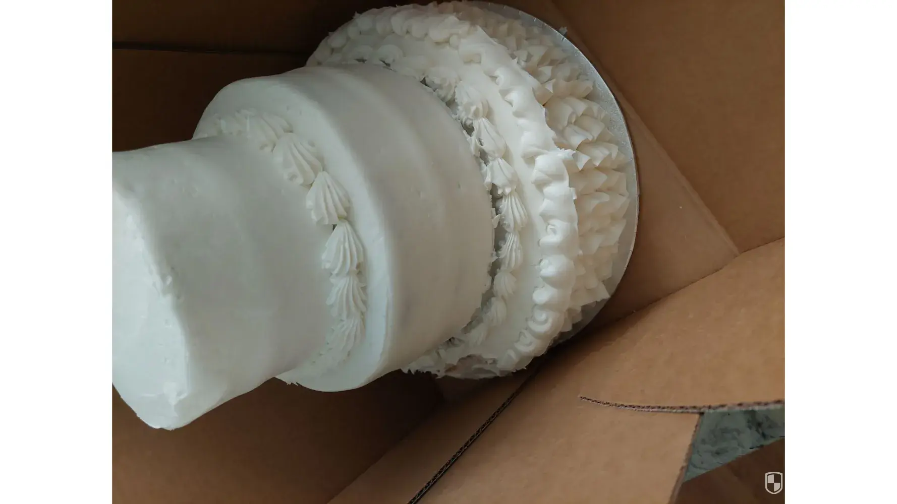 The cake was sitting on a rack in a box, which should have been inside the cooler. The cake was falling apart!