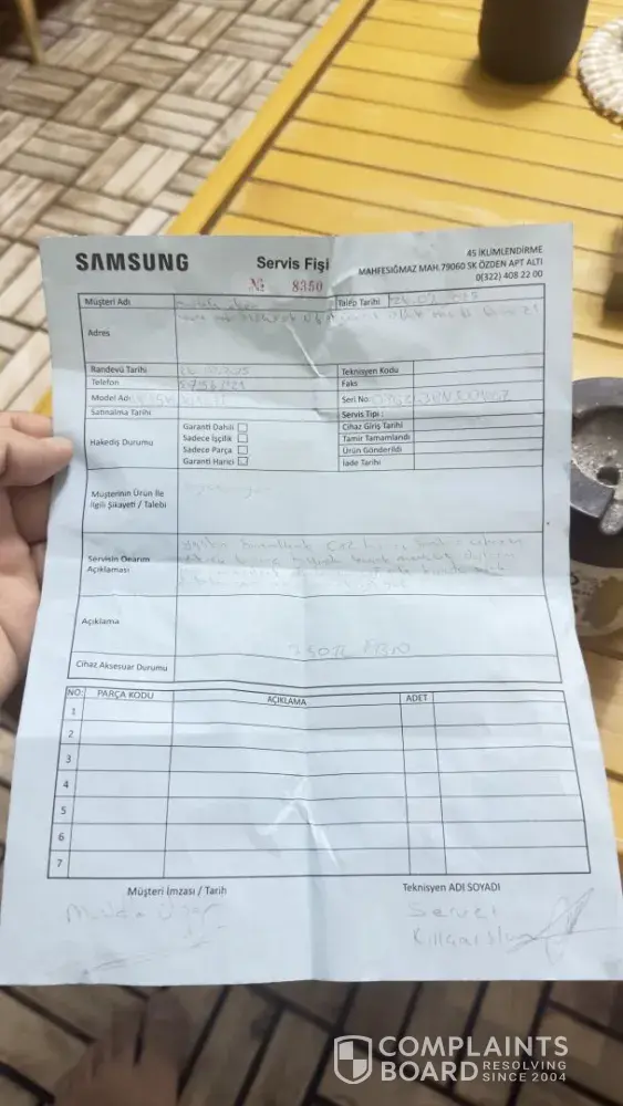 I called the authorized service and Samsung Turkey customer service many times. I suggested, “I’ll pay out of pocket to have the installation done myself, and you can come and approve my warranty then.†They said they couldn’t do that and that they had to install and approve it themselves. I wasn’t given this air conditioner as a gift, nor will I receive payments for using it. It’s a product I paid for, and the purpose of an air conditioner is to cool down during hot summer days. Why they want to make the customer suffer, I have no idea. Also, I’ve been working all year, waiting for a vacation once a year, and they say they’ll come on the day before the holiday, preventing me from going anywhere. Another concern is that they might call on that day and say they couldn’t come due to high demand, ruining my vacation, or they might come and say additional things need to be done, delaying the solution until after the holiday.