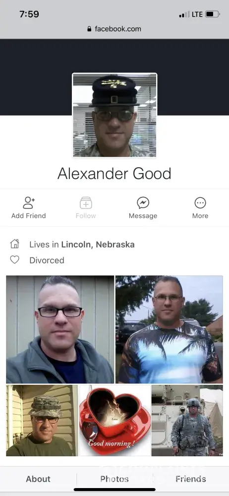 This person contacted me using Instagram saying he works in the army (D.o.D) deployed in Belgium using the name Eagan P Good. He says in order for him to be able to take a leave, I have to file one for him which I did. The email I received states that money must be remitted for him to leave. Which is baloney. He has a Facebook account as well. He Has been...