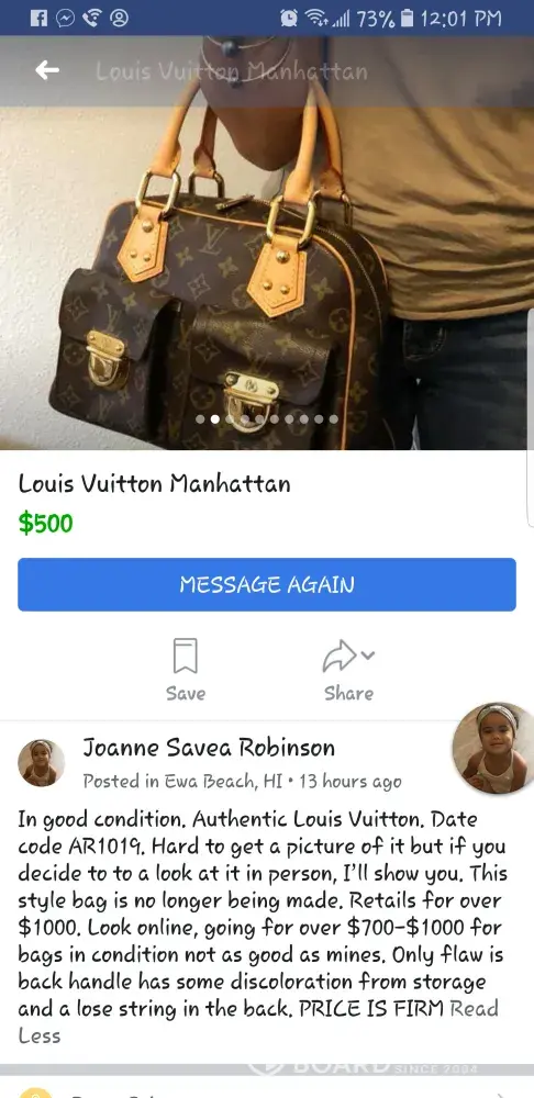 Joanne Savea Robinson was selling a authentic purse for $500, so I got interested and message her about it and she was absolutely sure that the item was real for even telling me to go to a place where I can get it check. And also mentioning on her info that her bag cost about $700- $1, 000. So I really thought that it was real but I still went to go check...