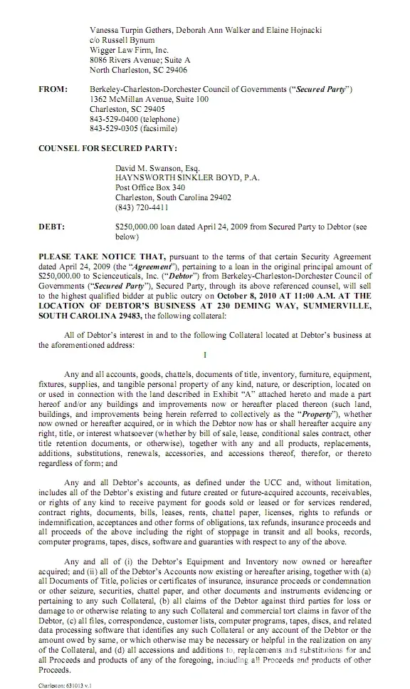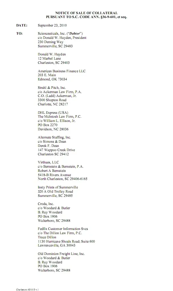 Anyone interested, Scienceuticals is dead. Dorchester County seized all the property including all the records, clients and employee contracts from Don and sold it at auction. He owns nothing but the debt.