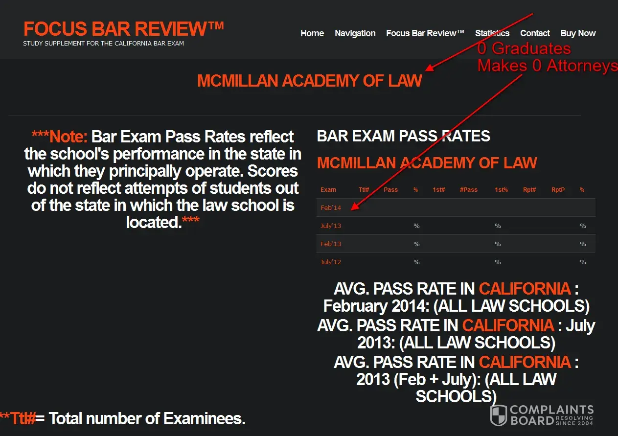 Although a lawsuit against the McMillan Academy of Law, La Mesa, California, 4670 Nebo Drive, has not been filed, it is of great concern to me the "law school" has not created a single attorney in over a decade per a law school review. Another issue with the purported law school, in my humble opinion gives all outward appearances as being a front for tax deductions since (1) it operates out of the same law office as Scott McMillan law firm does, and (2) remains in business (not due to profit, but by keeping its license active). So when a business doesn't make a profit but still exists, there must be some benefit for the proprietor. But I could be wrong too. The McMillan_Academy_of_Law may actually qualify as a "hobby" under IRS standards since the school doesn't have any apparent profit to speak of since its profit comes from students - which according to law dragon, does not have any students.
