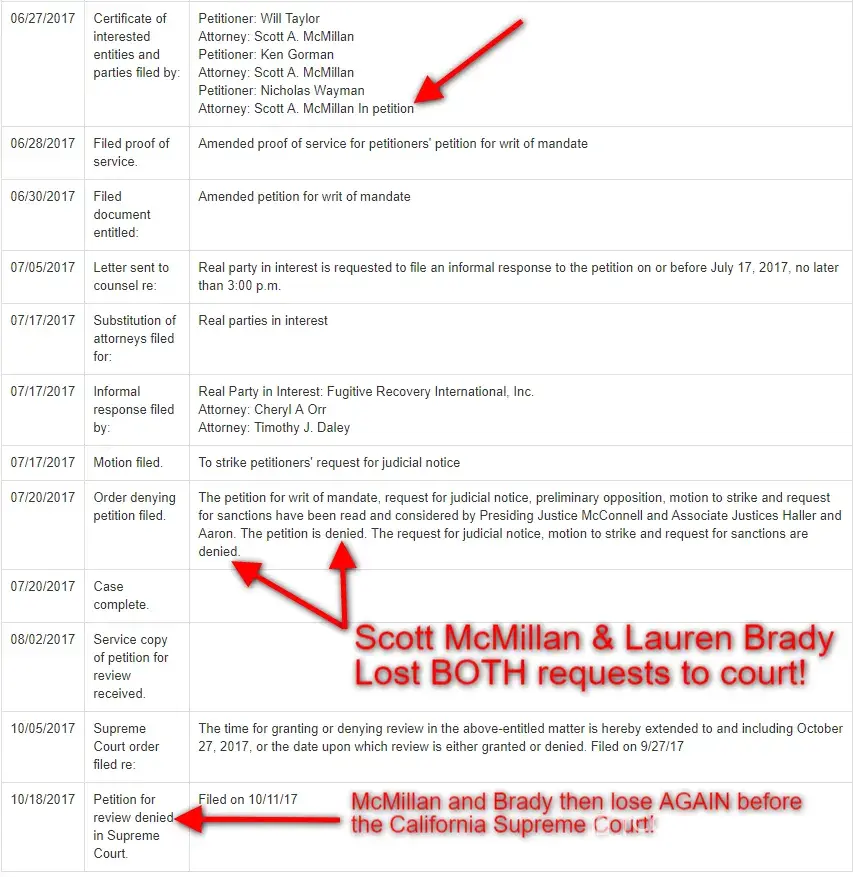 After the State Bar of California shut down his law school in June 2018 due to fraud, this is just of many defeats Scott McMillan has suffered: