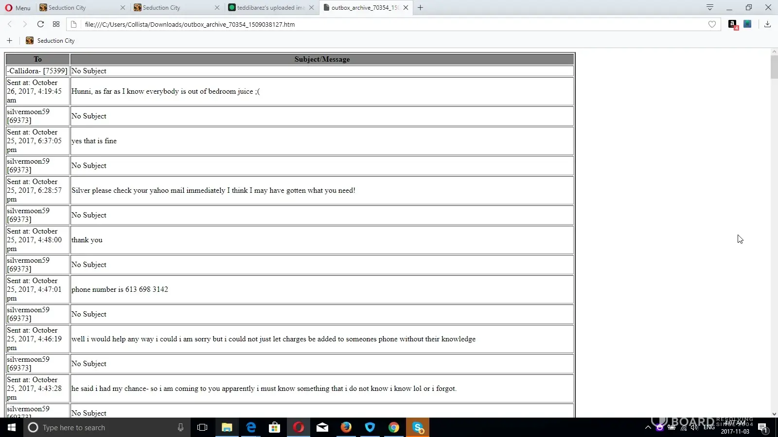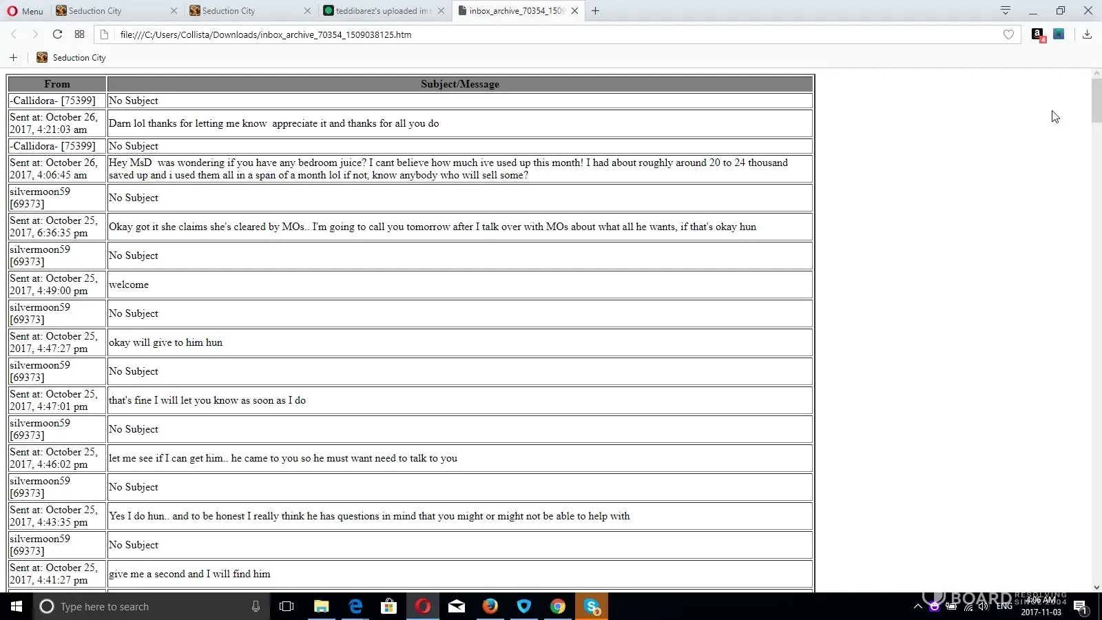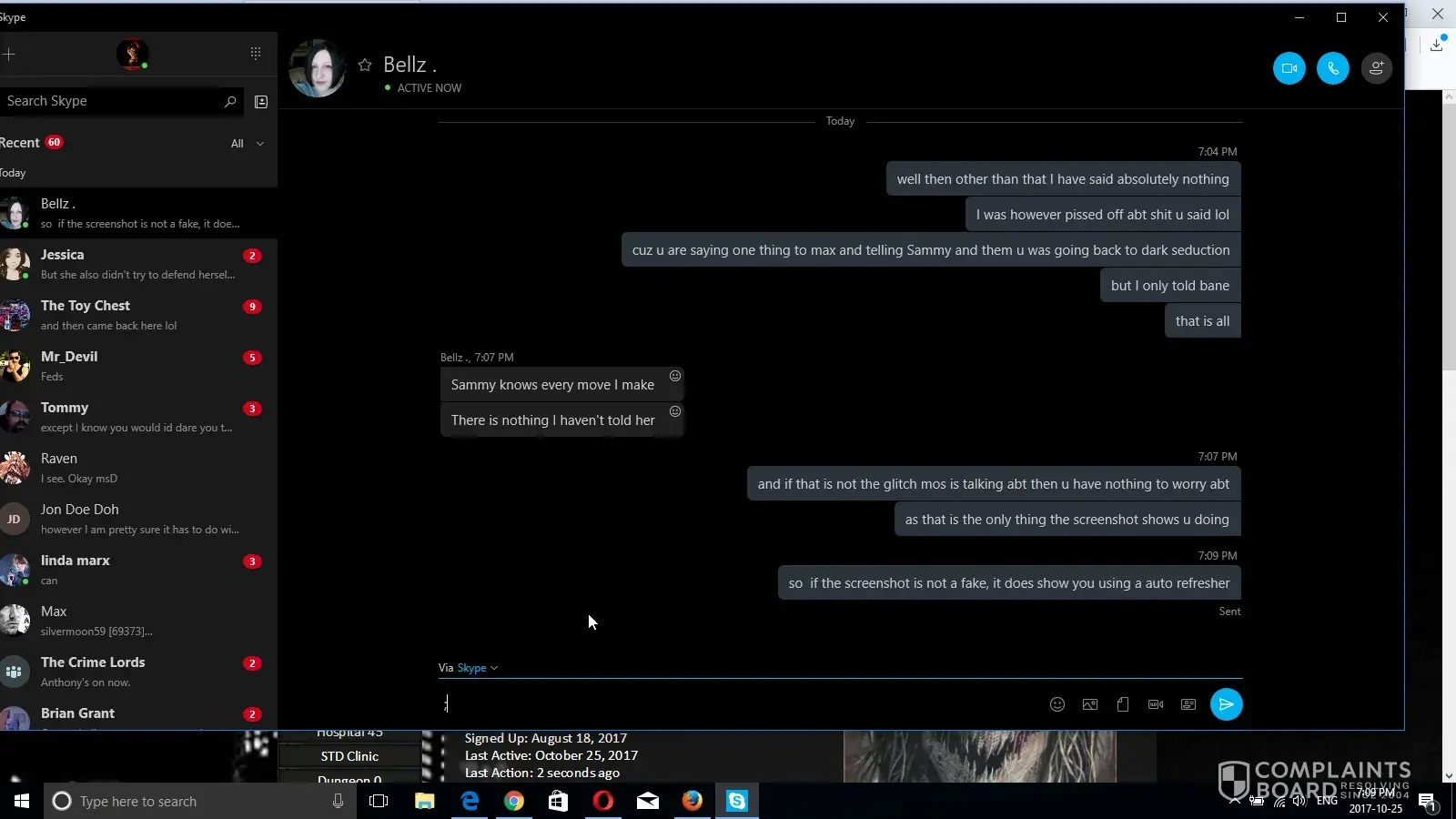 And how could I seriously alter the words she wrote that came off her own skype, she clearly admitted to it herself, anyone that talks to her knows that is her skype, but regardless I ain't gonna sit here and argue something that obviously wants to be buried. But at the same token don't sit here and nonchantley refer that there was any kind of proof on me other than trades with other people, ( and if that is not at all what you meant by that comment then I do apologize ) what or if someone did anything I still did not know, yes I probably should have called but my number was left and I was supposed to be called the day before, since I did not get a call, I woulda thought I was alright and flew way way off the handle when I was pitted as I felt my money was wasted and I was treated very badly as a paying customer, just as you likely felt if you thought someone was stealing from your Business you were being screwed over, just as I do not feel that we should not be pitted a flippin year for going to another site and disputing something.
