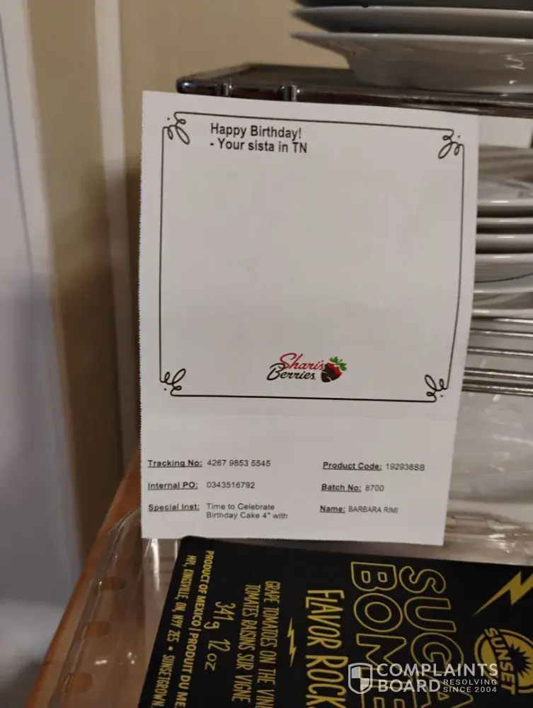 Read full complaint and 1 commentShari’s Berries