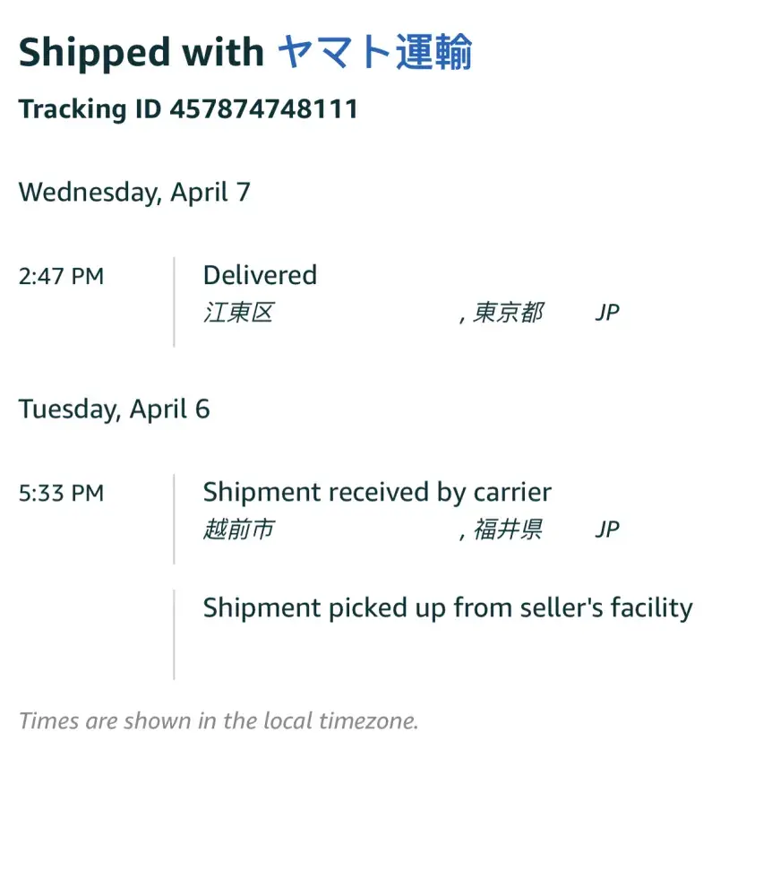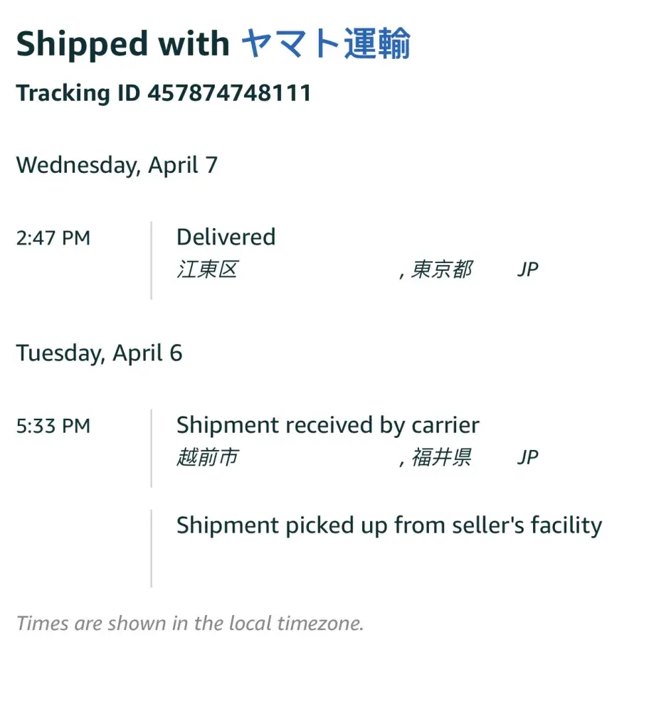 Tracking ID 457874748111 as reference, I have two watches from Amazon that has been delivered on 7th April 2021 to my address in Japan l Azhar Din AIC X FRONTIER WEST 5F, 3-2-9, SHINSUNA Tokyo Japan KWI 1033275, but until today this shipment still not updated in the system. Please do the needful and communicate to me as well.tq