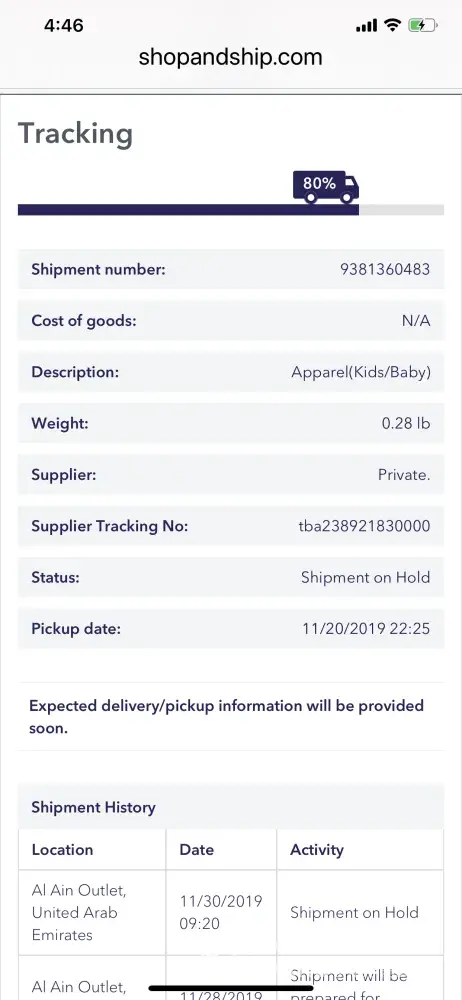 My package is just sitting with Aramex, Riyadh (Exit 16) for 8 days now. I live as close as Exit 15! There is no further response to my emails bar the one customery automated reply. In my estimation 8 days and counting is poor service. What Shop and Ship have to realise is that customers have already paid for an item that is not yet in their possession. Just deliver it to me, please?