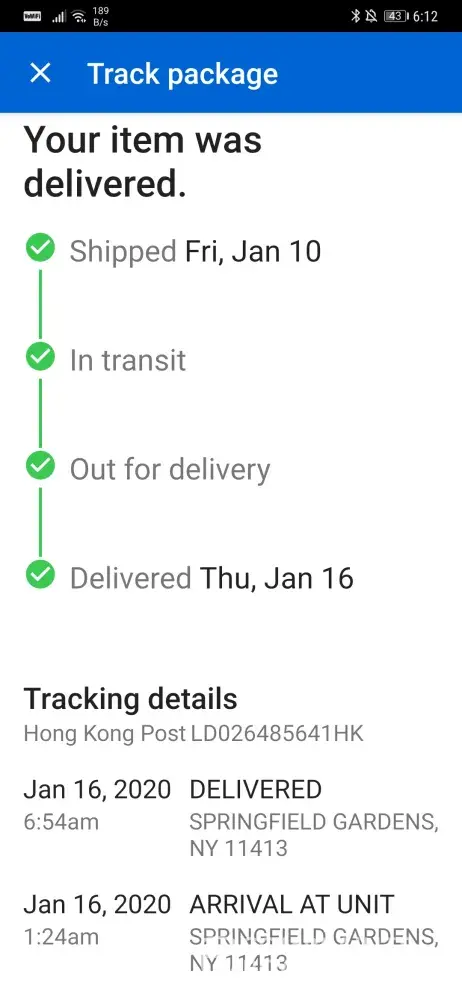 I have one package delivered to shopandship NY 13 days ago (tracking number LD026485641HK). From ebay tracking manifest said it was delivered on January 16, 2020. From S&S I didnot and never see any tracking information about that shipment. Please advise.