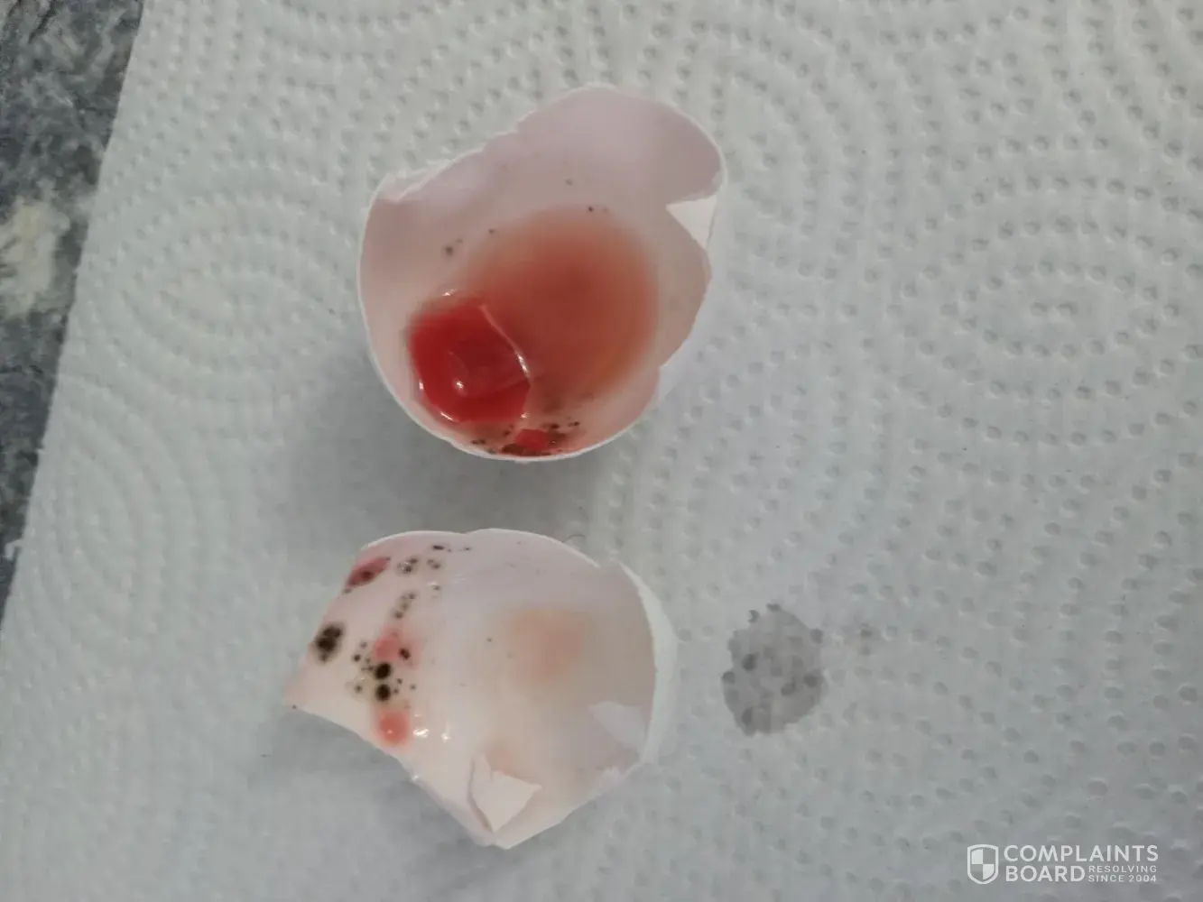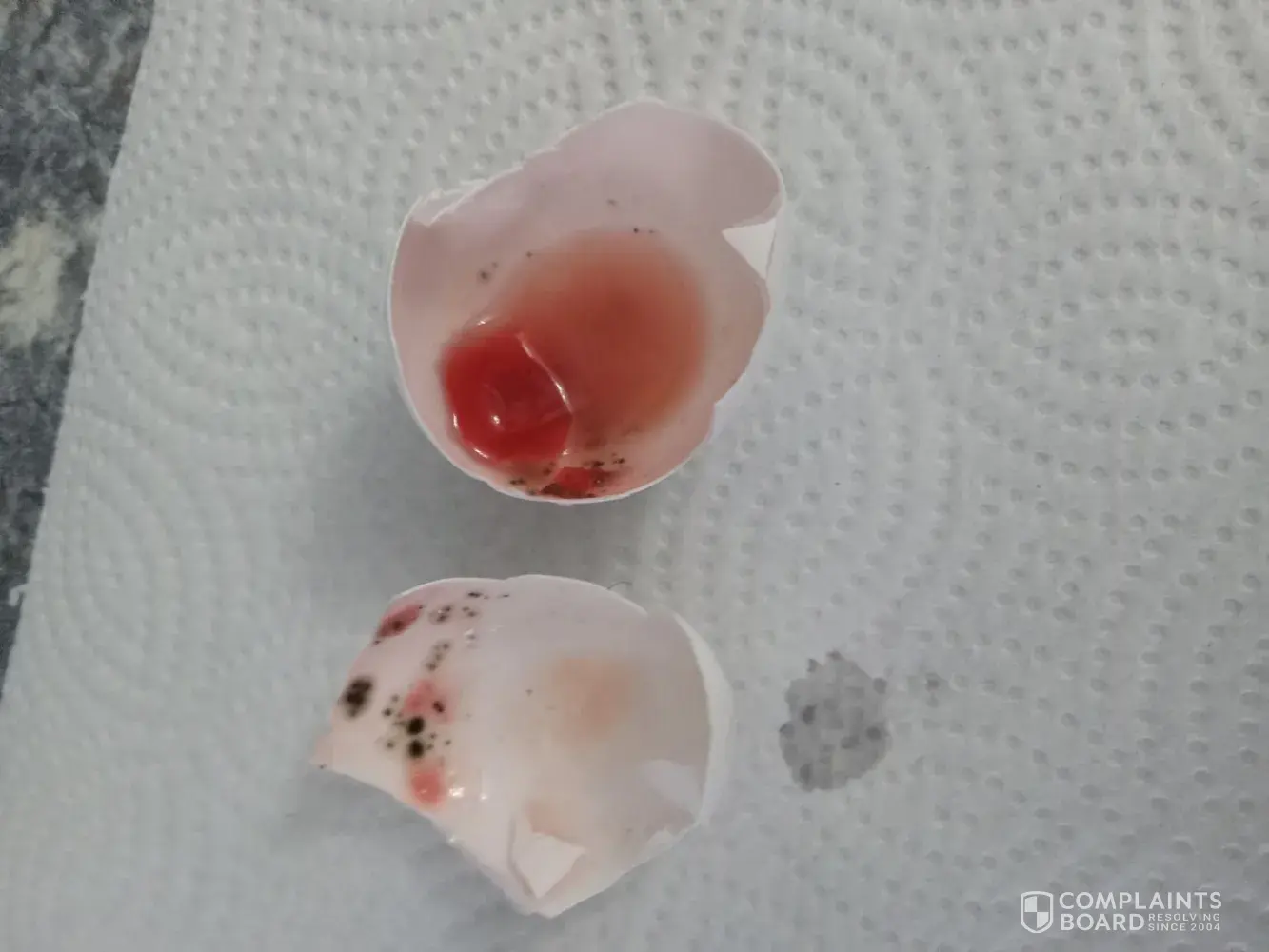 Time is 10:30 am nov22/2025. I was making poached eggs for my wife and I And the first egg I cracked open was all red with brown in it. I proceeded to clean the pot and threw the egg down the drain. I saved the egg shell with the red and brown in it and I saved the car ton also. We have pictures of the shell it is nothing but grose. I bought the eggs on...