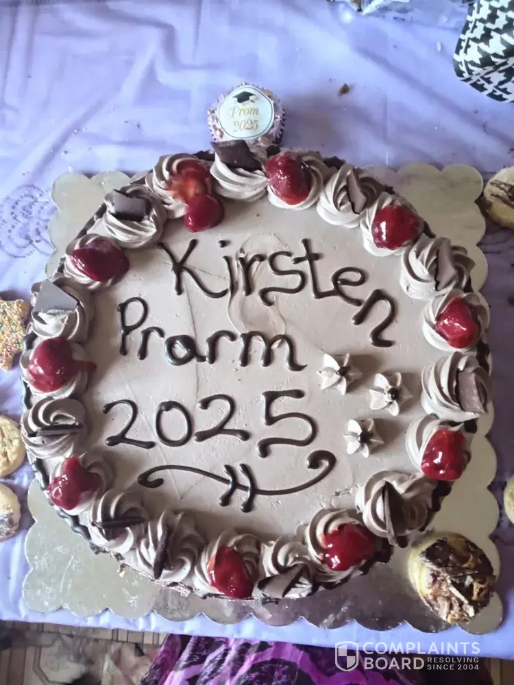 The spelling on the cake was incorrect. Prorm and it had to say Prom. It was a chocolate cake prize R199. 99. WCP/038718 VAT No: [protected]. Date I ordered was 3/12/25 at 18:03. Store 3071 Reg 018 TX 424. I collect the cake on Thursday. I sincerely hope that my complain would be resolved. I personally would not buy any cakes for a function at Shoprite Lansdowne corner in the future