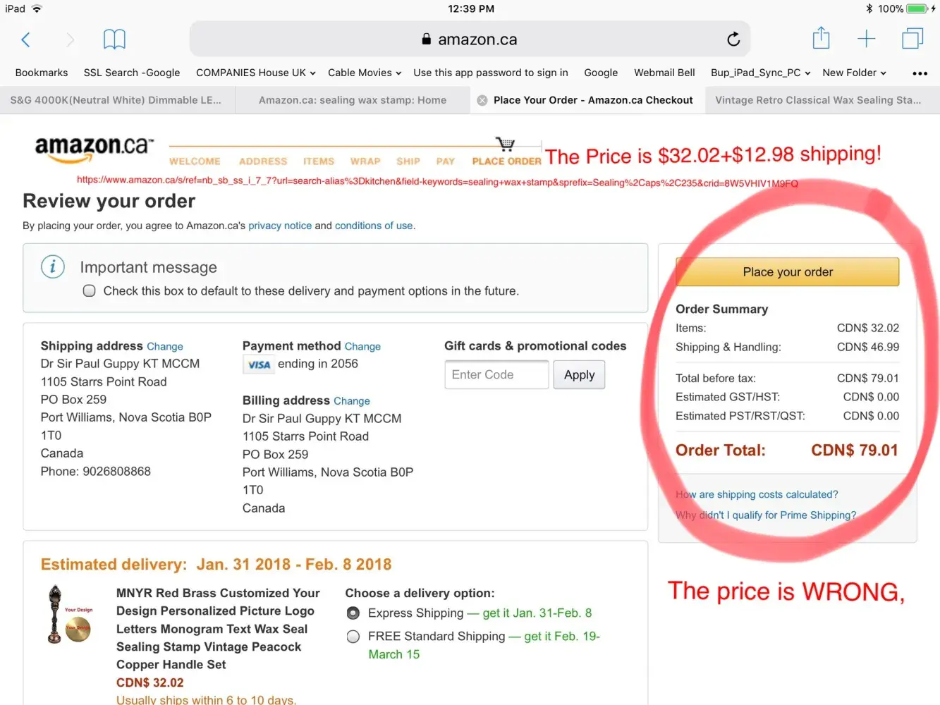 Amazon.ca will not provide an email link to forward screen prints recording mistakes by their staff!