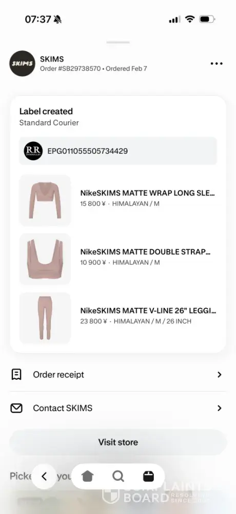 Skims - I placed an order and it had FRONT OFFICE on the delivery address twice in all caps, but it was misdelivered.