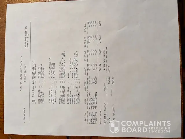 Because of the bad judgement and misinformation from technician JAH1 I request a credit for the city of SLT permit fee of $272.12.