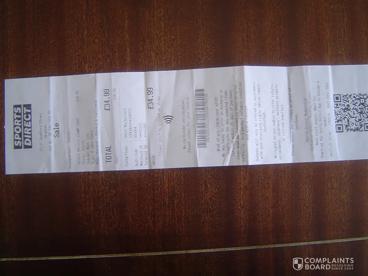 I went to my nearest store to try and get a replacement or refund, but the manager was not there and the staff told me that after 28 days from the date of purchase, I have no rights. This is incorrect and I was very disappointed. I decided to contact Sports Direct Customer Services via an online form and a member of the Customer Service team advised me to email photos of the faulty items and proof of purchase, which I did.
