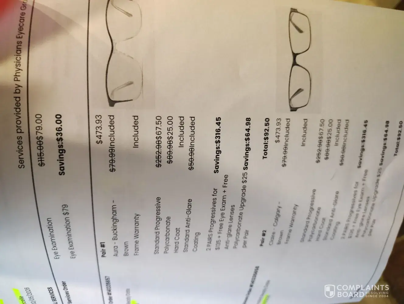 Read full complaintContacts, glasses, orders