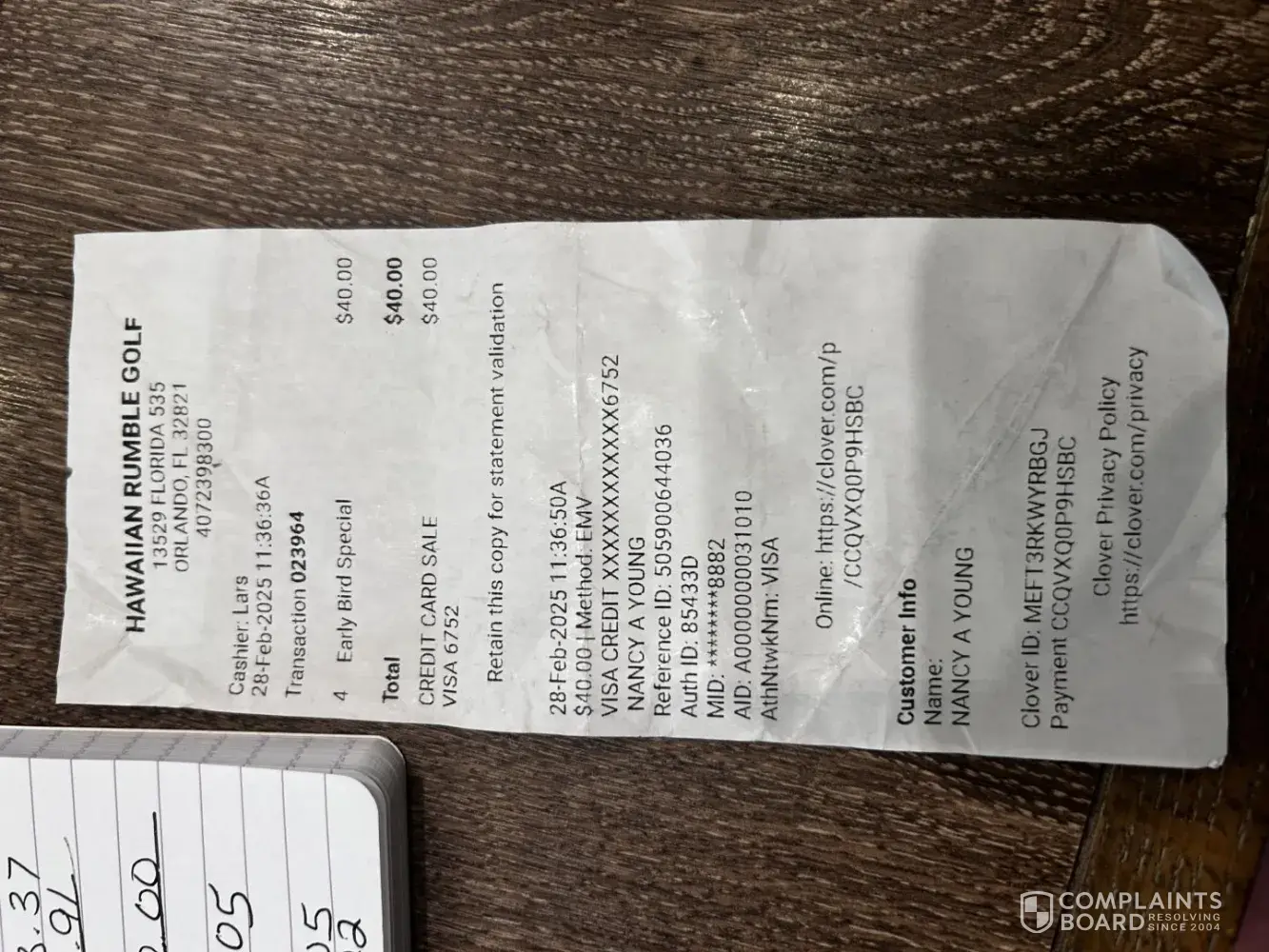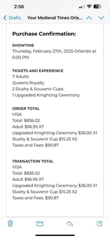 Desired outcome: I am expecting a full refund on my credit card for the ticket price ($147.80); and compensation for the cost of the shuttle both ways ($15.00 one way, and $47.00 going back).