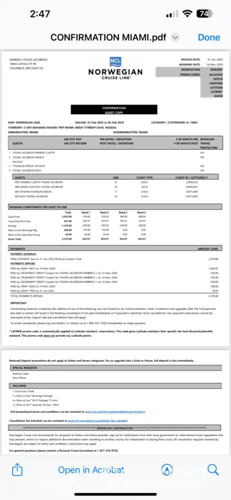 Flight SY753 from Minneapolis to Fort Lauderdale was delayed on February 23, 2025 for eleven hours which our family of 7 ended up missing our cruise scheduled for February 23 leaving at 4:00pm. This left us scrambling to find a Hotel, car rental, food for 7 people and excursions. Our plans for the cruise week had all been paid prior to us leaving...