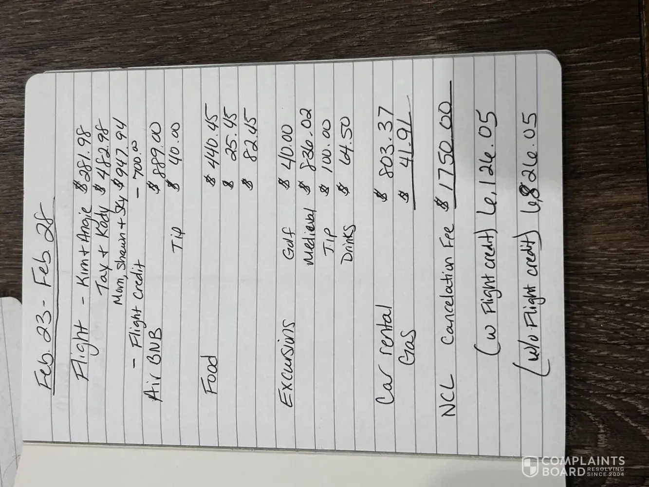 Desired outcome: I would like compensation of expenses incurred due to the canceled.
