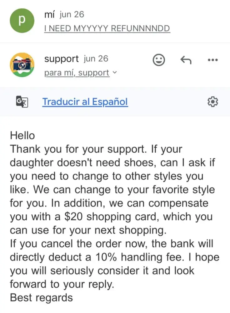 Still no refund after returning defective shoes