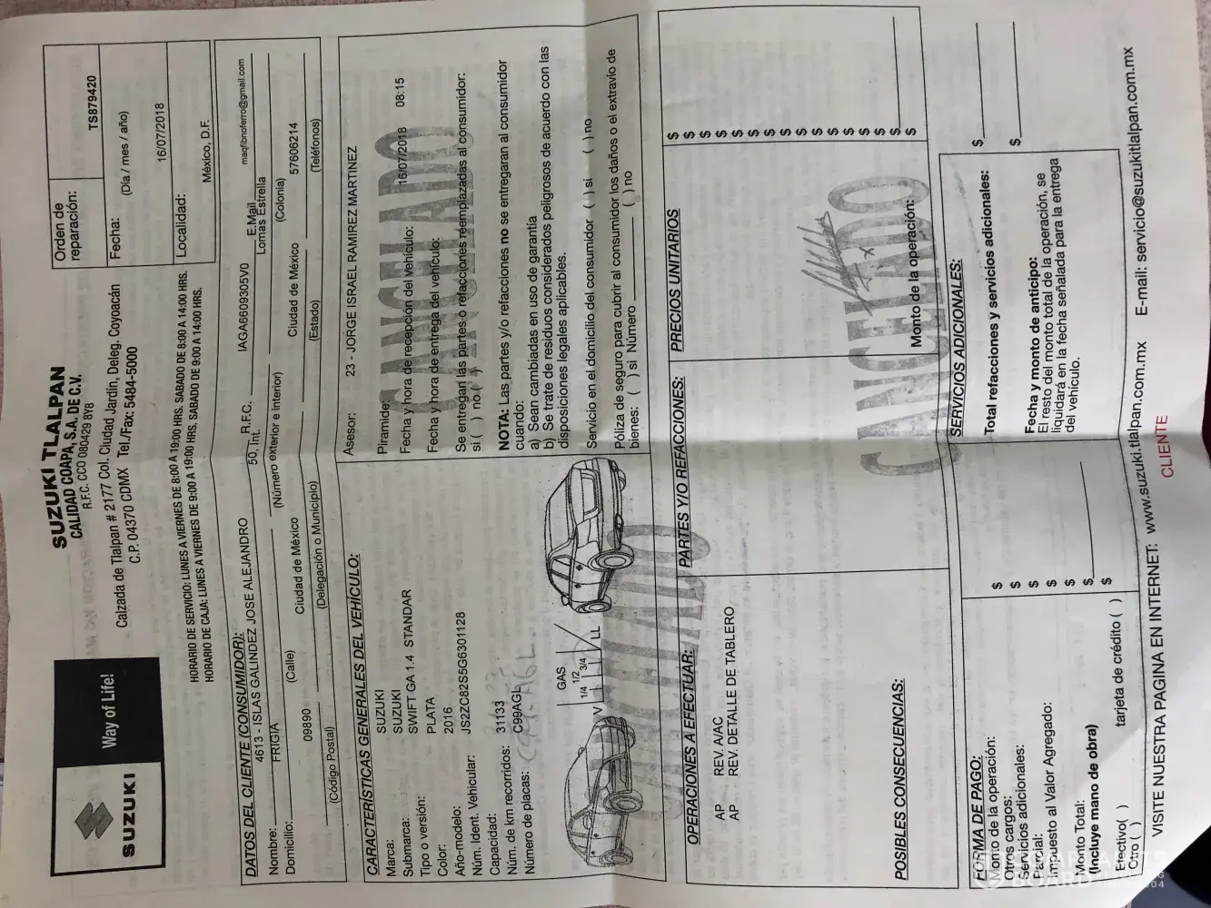 My car presents overheating, I call the dealer and the send a pick up truck. After cheching the car at the dealer they said that the car was ready. Took the car back home and present the same overheating. I look at the car engine and look like they have not done anything. I stop the car and call back the dealer ship. All the atention have been really bad. And my car problem have not been resolve. My car Is ignis Suzuki number serial JS2FH81S3H6101484 Was attendee in México city Suzuki Polanco