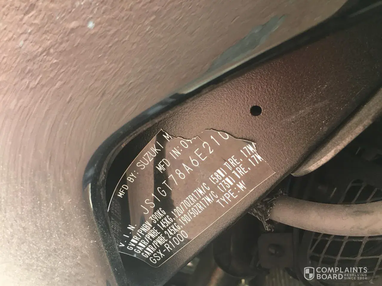 Suzuki vin plate mine motocycle damaged