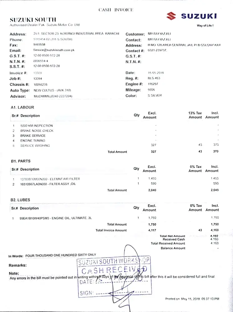 I have worked as service adviser for 10 years in several companies such as mercedes-benz, bmw, honda etc. Based in uae I have never seen such an foolishness among the representatives of suzuki company in pakistan karachi where customer has to pay for maintenance even the vehicle has 3 years and 60k service plan only first service after 1000 km is free which is funny that what maintenance is required after 1000 km only tightening bolts and do visual checkup as if there is no complains from customer side and all other services customer has to pay only thing is free is labour.