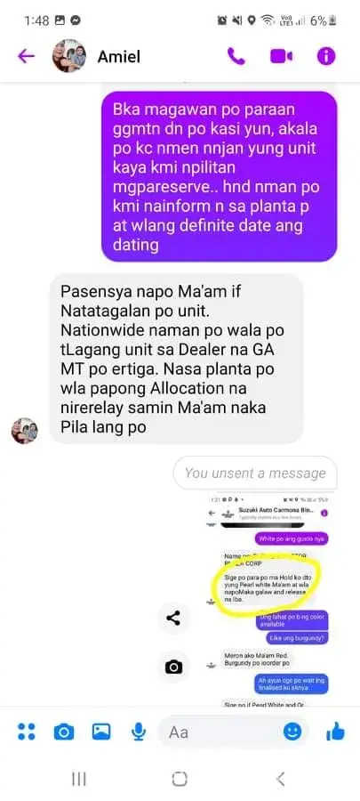 We were asked and paid for reservation fee of 5000 at Suzuki Carmona branch for Ertiga unit, however when we advise that we'll proceed and have completed the money for the down payment the unit is not available.. How can you ask for a reservation if there's no unit available! We have waited for a month only to advise that the unit reserved was given to someone else.. We then decided to look for another branch that has available unit which is in Alabang.. We have requested for a refund since March 24 2022 and still has not received it.. I have given enough patience to wait for a unit to become available after deceiving us that the unit is reserved. You just need to refund my money back or I'll sue you!