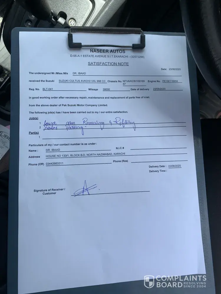 subject: RE: Complain About Suzuki Cultus AGS 2018 Lower Arms