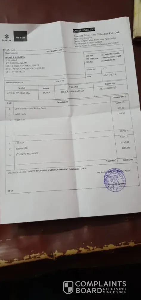 My name is Logesh Chokkalingam, Brother of Sudhakar who currently owns Suzuki Access. As mentioned above, my brother owned Suzuki scooter do not give mileage as expected and advertised. I have reached out to Amman Agencies service manager and the dealer several times about this issue, but they don't give a proper response.