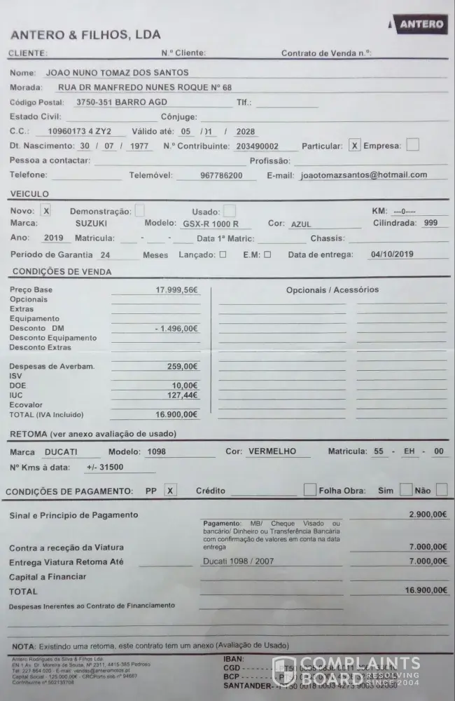I contacted Suzuki Financial services with all the above information and they informed us that the Garage had the authority to amend the financial agreement but they just kept using delaying/distraction tactics like...(We'll sort it) but time went on and nothing has been done.